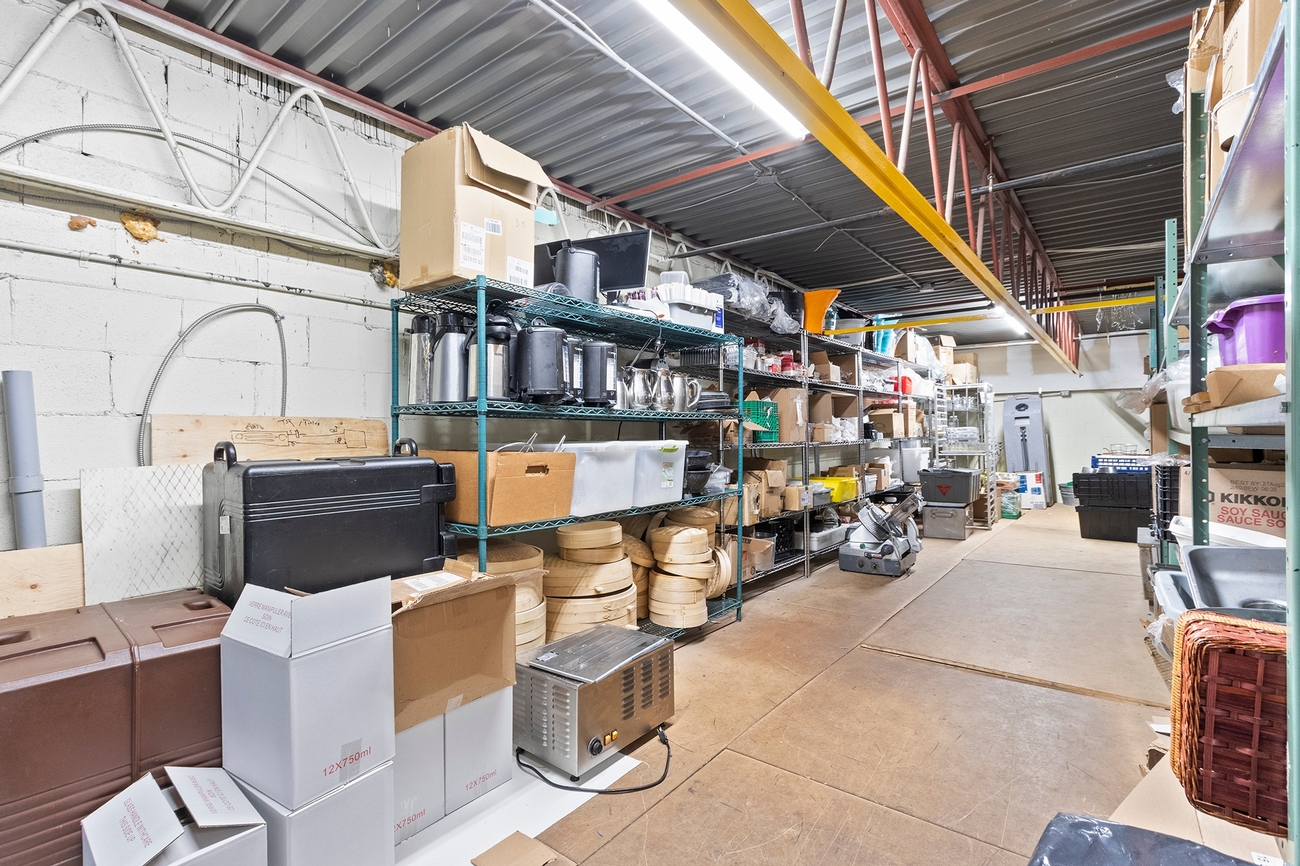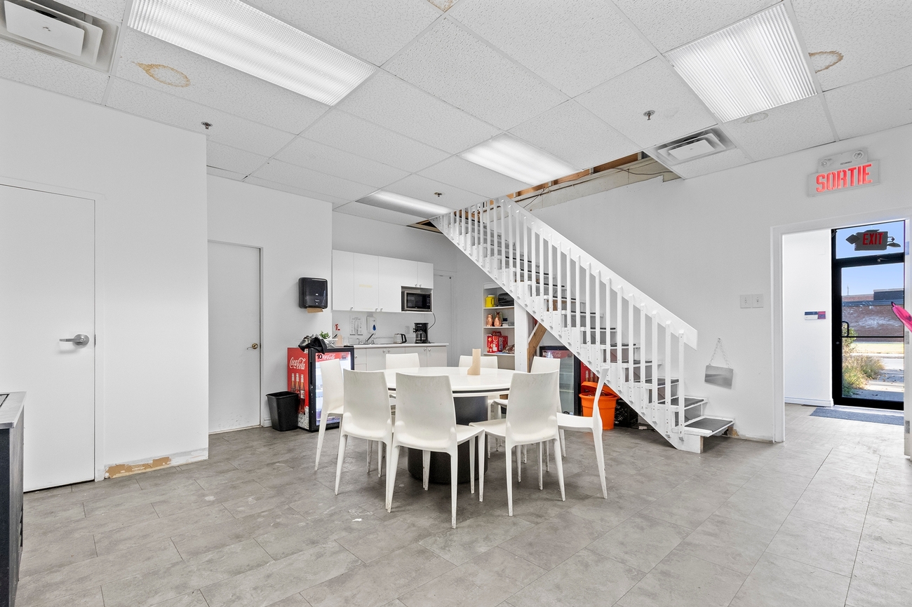 L’immeuble comprend un bâtiment commercial d’un étage avec mezzanine, offrant une configuration simple et fonctionnelle pouvant s’adapter à différentes activités commerciales ou de services. La présence d’une mezzanine et la superficie du bâtiment permettent une flexibilité d’aménagement intéressante. La propriété est également équipée d’une cuisine commerciale complète et de deux congélateurs commerciaux, ajoutant à son potentiel d’utilisation.